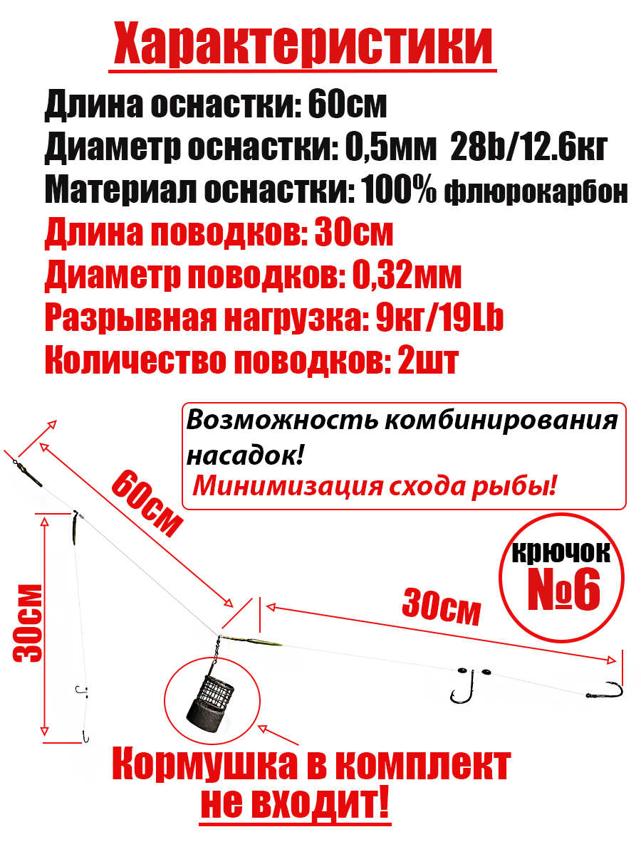 В данном монтаже используются материалы от ведущих мировых производителей. В первые, на поводках мы стали использовать леску нового поколения, в которой используется технология плетения на молекулярном уровне.